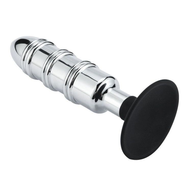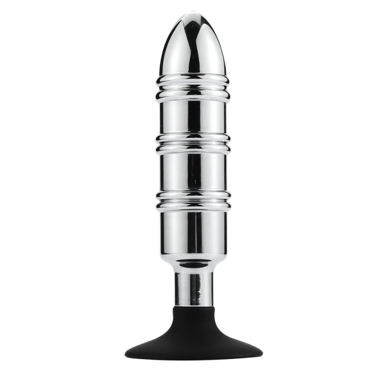 LANG RAKETTFORMET BUTTPLUG I METALL MED SUGEKOPP