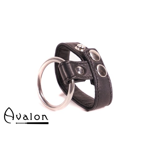 AVALON - NOBLE - PENISRING I METALL OG REIM TIL PUNG I LÆR - SORT