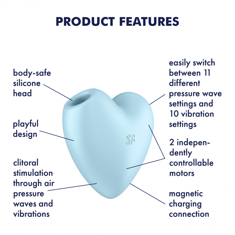 SATISFYER - CUTIE HEART - TRYKKBØLGESTIMULATOR MED VIBRASJONER - BLÅ