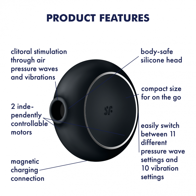 SATISFYER - PRO TO GO 3 - TRYKKBØLGESTIMULATOR MED VIBRASJONER - SORT